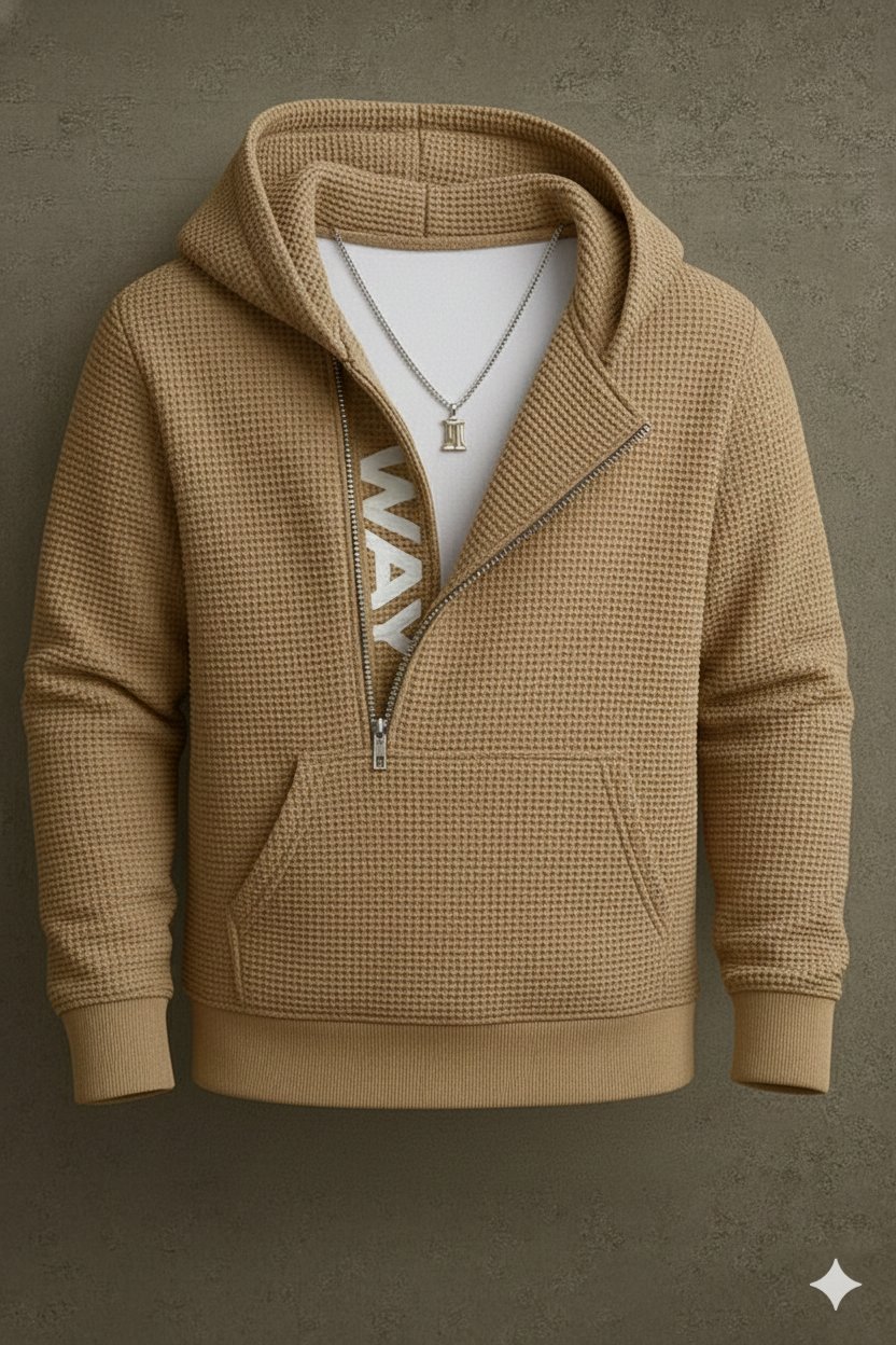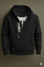 هودي رجالي شتوي بخامة تقيلة وناعمة، بيدفي كويس ومريح في اللبس طول اليوم. تصميم عصري بسوستة مائلة يديك شكل مختلف وشيك، ينفع للخروج والمشاوير اليومية وسهل يتلبس مع جينز أو تريننج.
